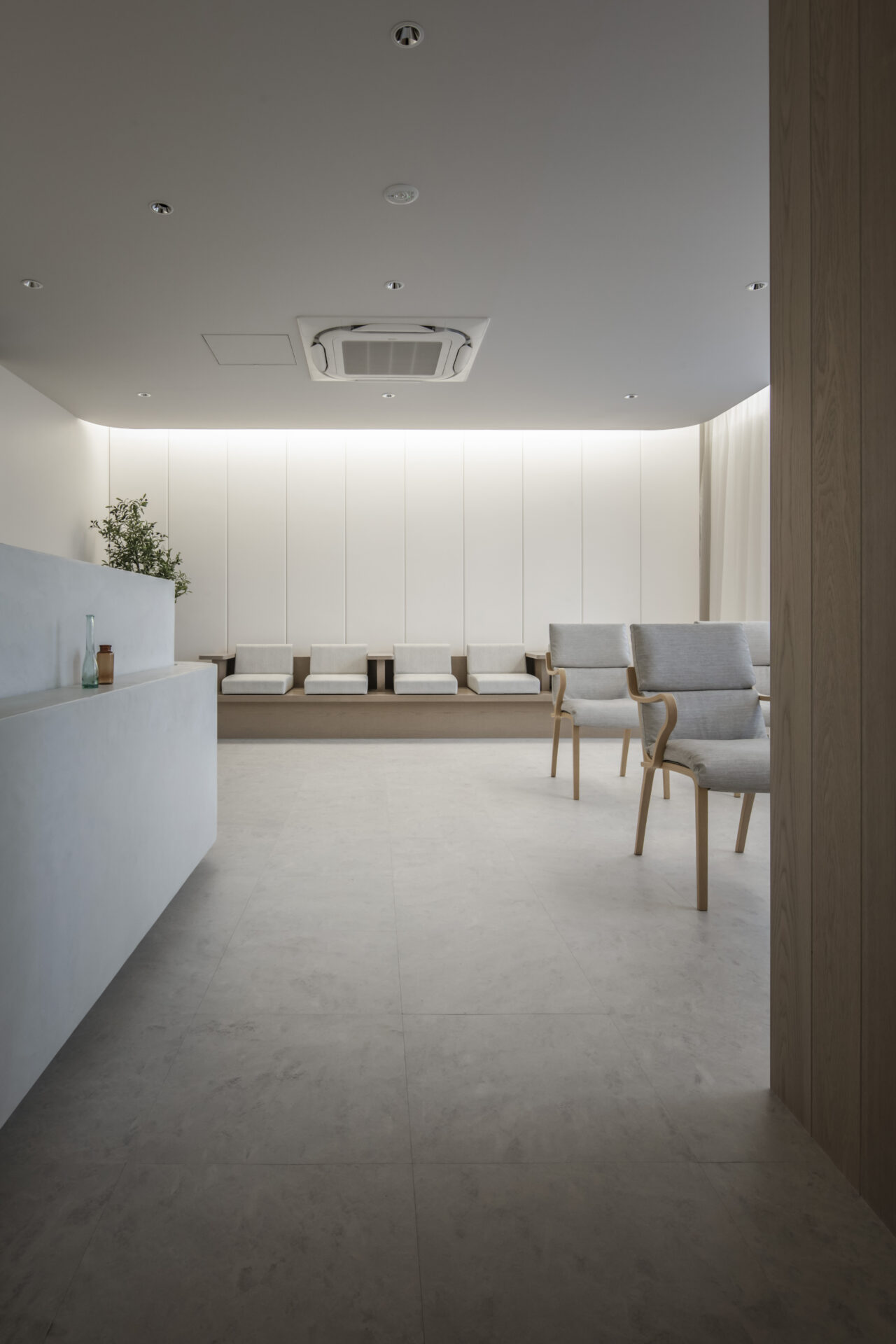 ニュートラルな空間と緊張感を和らげる空間を目指し空間演出を考慮している